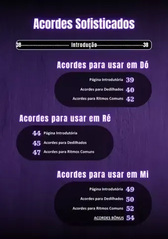 Além disso, com o Bônus "50 sequência de acordes sofisticados" você terá mais criatividade em criar sequências de acordes sofisticados, usando os acordes do dicionário.