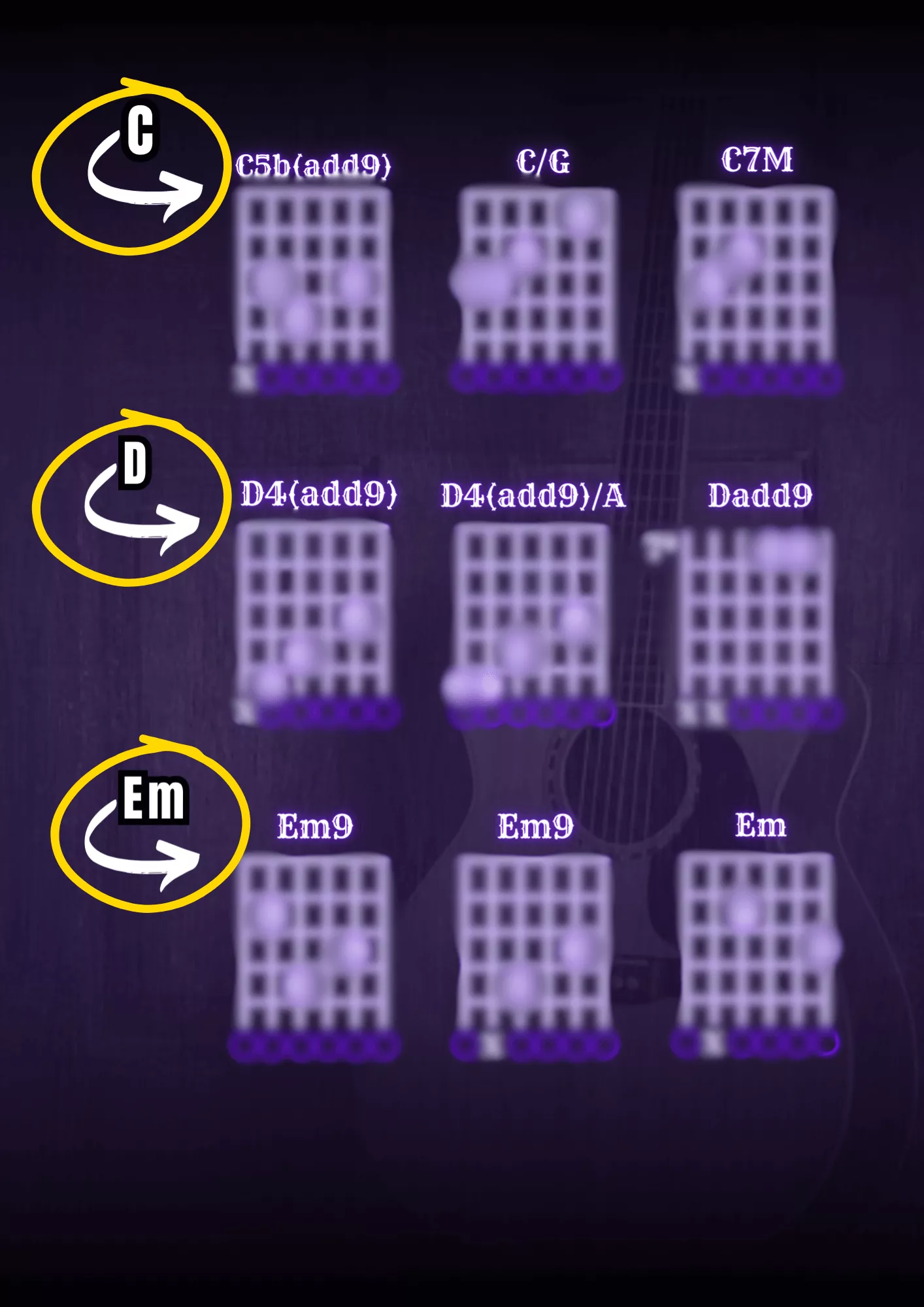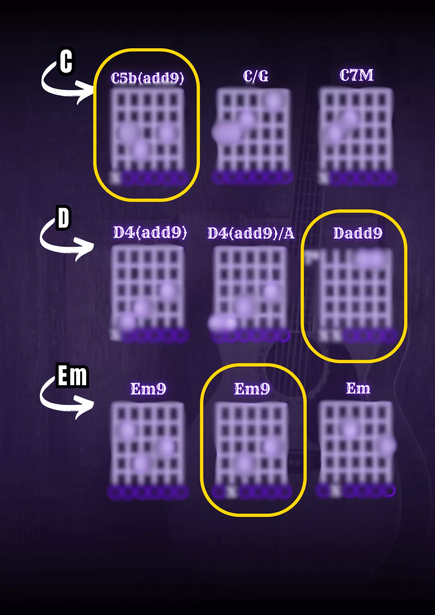 Esses acordes são ideais para fundos musicais, arranjos, dedilhados, arranjos fingerstyle, etc...