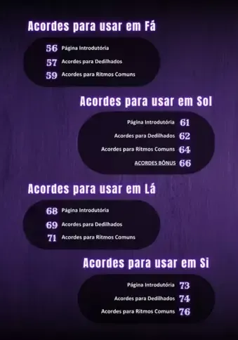 Então, basta ver no SUMÁRIO quais são as páginas com os acordes sofisticados específicos para Sol (G).